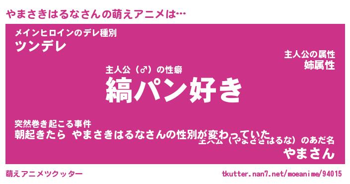 | 男性向けラノベタイトル風あだ名 | 『やまさきはるなの憂鬱』 |