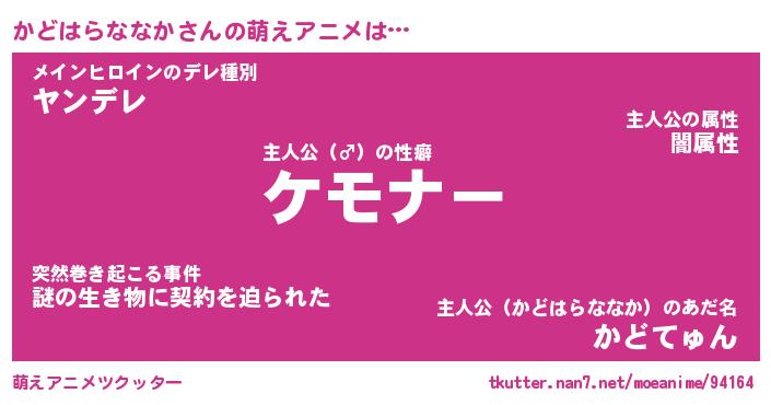 | 男性向けラノベタイトル風あだ名 | 『カドハラナナカアートオンライン』 |