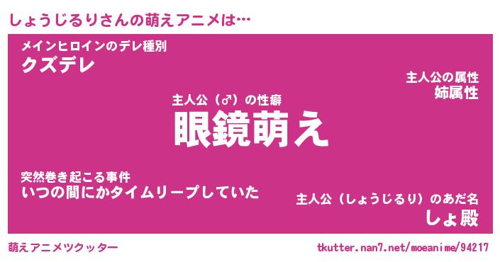 | 男性向けラノベタイトル風あだ名 | 『しょうじるりの憂鬱』 |