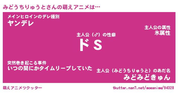 | 男性向けラノベタイトル風あだ名 | 『みどうちりゅうとの憂鬱』 |