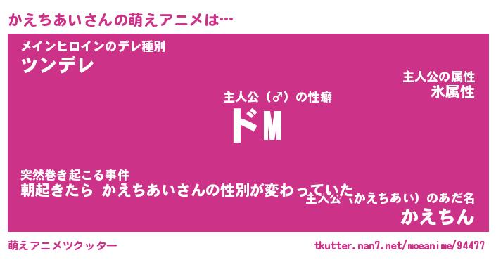 | 男性向けラノベタイトル風あだ名 | 『かえちあいの憂鬱』 |