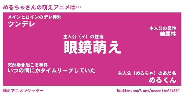 | 男性向けラノベタイトル風あだ名 | 『めるちゃの憂鬱』 |