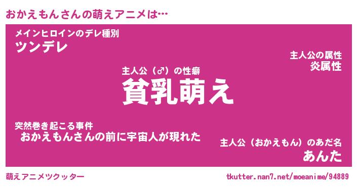 | 男性向けラノベタイトル風あだ名 | 『おかえもんの憂鬱』 |