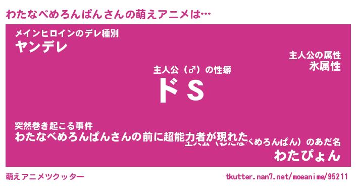 | 男性向けラノベタイトル風あだ名 | 『わたなべめろんぱんの憂鬱』 |