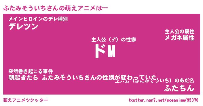 | 男性向けラノベタイトル風あだ名 | 『ふたみそういちの憂鬱』 |