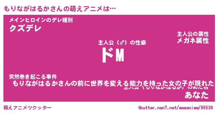 | 女子向けラノベタイトル風あだ名 | 『(仮)もりながはるかのやんごとなき事情』 |