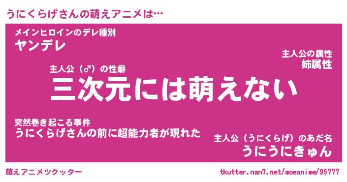 | ヘコむあだ名 | 『うににー』『酢こんぶ』『うにを』 |