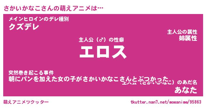 | 女子向けラノベタイトル風あだ名 | 『誰かこのさかいかなこを説明してください! ~契約から始まるウェディング~』 |