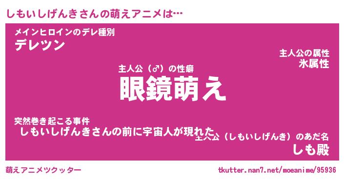 | 男性向けラノベタイトル風あだ名 | 『しもいしげんきの憂鬱』 |