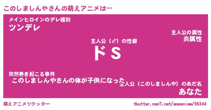 | 男性向けラノベタイトル風あだ名 | 『このしましんやの憂鬱』 |