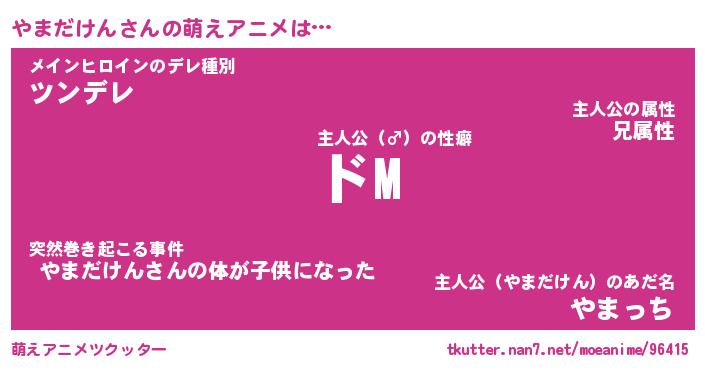 | 女子向けラノベタイトル風あだ名 | 『(仮)やまだけんのやんごとなき事情』 |