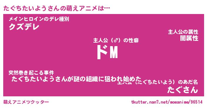 | 男性向けラノベタイトル風あだ名 | 『たぐちたいようの憂鬱』 |
