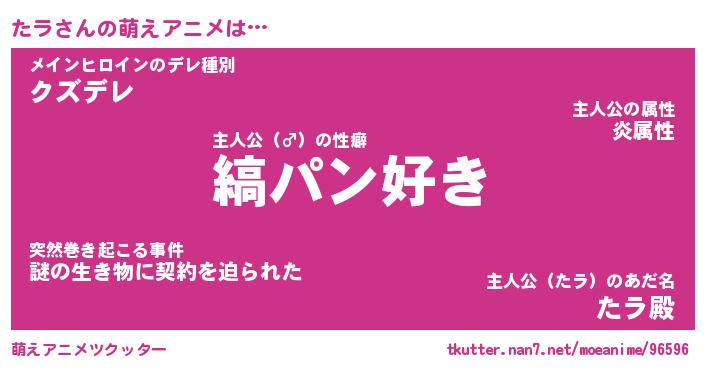 | 男性向けラノベタイトル風あだ名 | 『たラの憂鬱』『ノーゲーム・ノータラ』 |