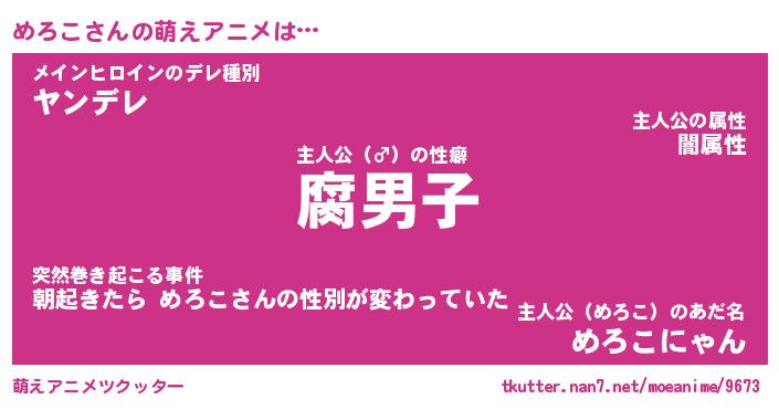 | 男性向けラノベタイトル風あだ名 | 『メロコアートオンライン』 |