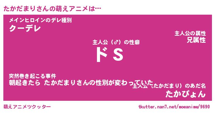 | 男性向けラノベタイトル風あだ名 | 『たかだまりの憂鬱』 |