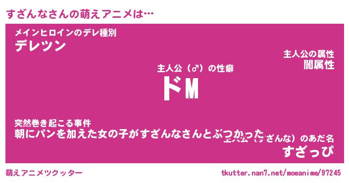 | 男性向けラノベタイトル風あだ名 | 『すざんなの憂鬱』 |