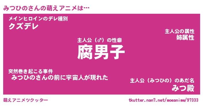 | 男性向けラノベタイトル風あだ名 | 『ミツヒノアートオンライン』 |