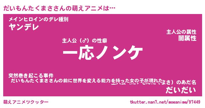 | 女子向けラノベタイトル風あだ名 | 『誰かこのだいもんたくまさを説明してください! ~契約から始まるウェディング~』 |