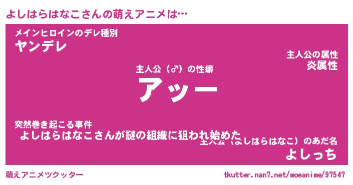 | 伝説のあだ名 | 『封印されし竜騎士よしはらはなこ』 |