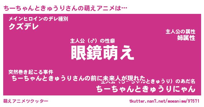 | 男性向けラノベタイトル風あだ名 | 『ちーちゃんときゅうりの憂鬱』 |