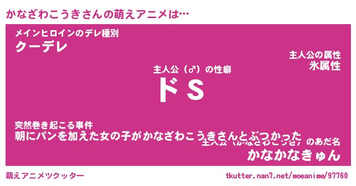 | 男性向けラノベタイトル風あだ名 | 『かなざわこうきの憂鬱』 |