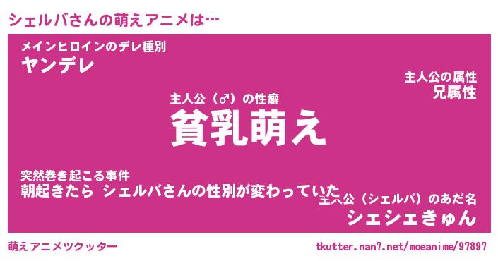 | 男性向けラノベタイトル風あだ名 | 『シェルバの憂鬱』 |