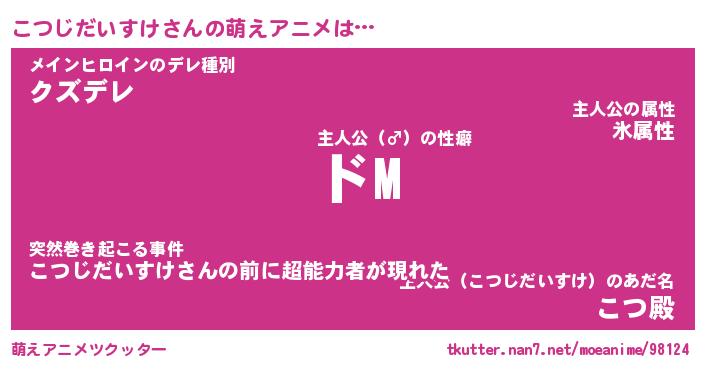 | 女子向けラノベタイトル風あだ名 | 『(仮)こつじだいすけのやんごとなき事情』 |