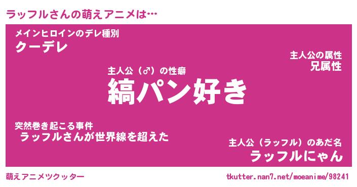 | ファンタジー風あだ名 | 『ラッフェル』『エターナルラッフルー』 |