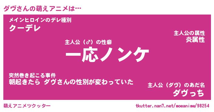| 女子向けラノベタイトル風あだ名 | 『誰かこのダヴを説明してください! ~契約から始まるウェディング~』 |