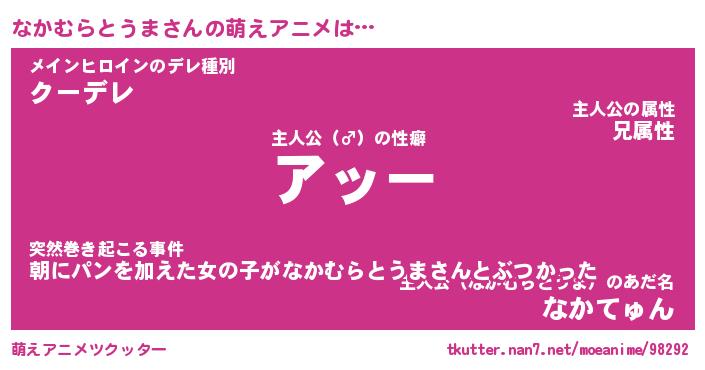 | 伝説のあだ名 | 『封印されし竜騎士なかむらとうま』 |