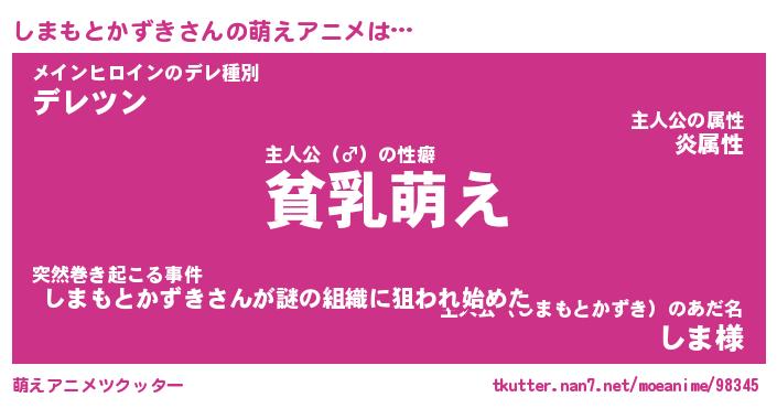 | 男性向けラノベタイトル風あだ名 | 『しまもとかずきの憂鬱』 |