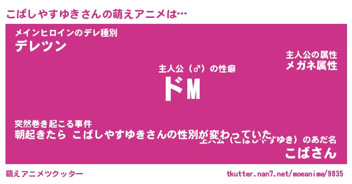 | 女子向けラノベタイトル風あだ名 | 『(仮)こばしやすゆきのやんごとなき事情』 |