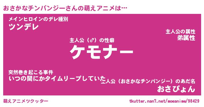 | 男性向けラノベタイトル風あだ名 | 『オサカナチンパンジーアートオンライン』 |