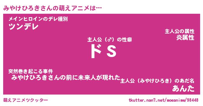 | 男性向けラノベタイトル風あだ名 | 『みやけひろきの憂鬱』 |