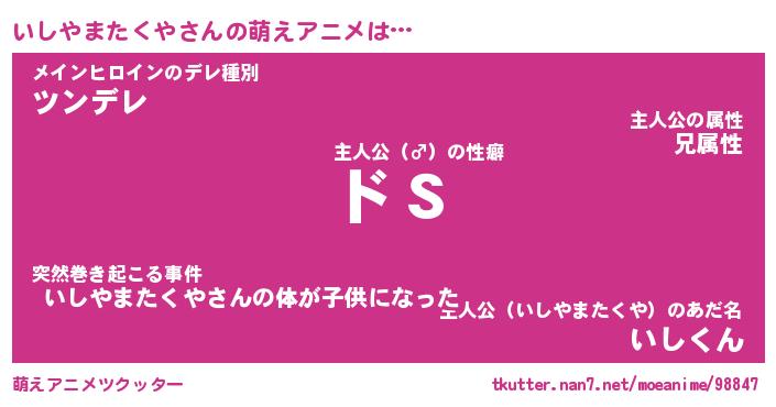 | 女子向けラノベタイトル風あだ名 | 『(仮)いしやまたくやのやんごとなき事情』 |