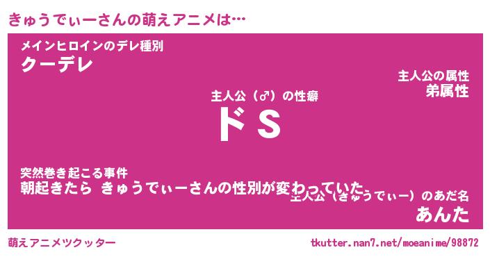 | 男性向けラノベタイトル風あだ名 | 『きゅうでぃーの憂鬱』 |