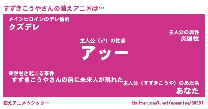 | 女子向けラノベタイトル風あだ名 | 『誰かこのすずきこうやを説明してください! ~契約から始まるウェディング~』 |