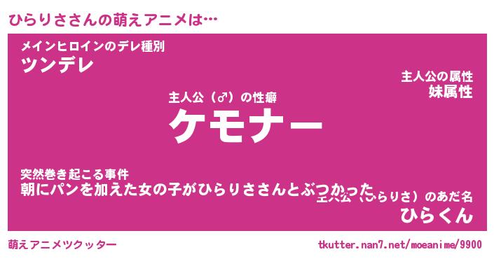 | 2回繰り返すあだ名 | 『ひらひら』『ひひらら』『いそいそ』 |