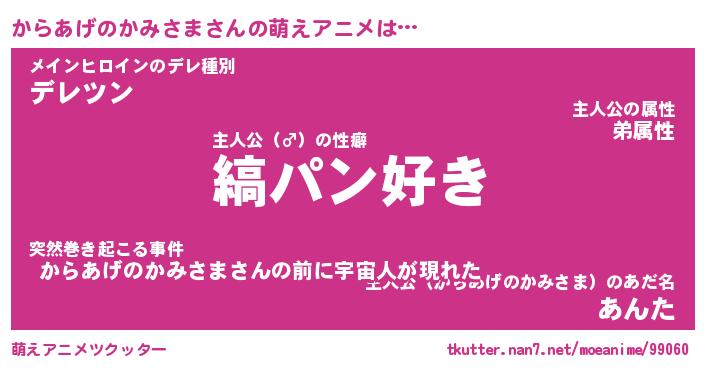 | 男性向けラノベタイトル風あだ名 | 『からあげのかみさまの憂鬱』 |