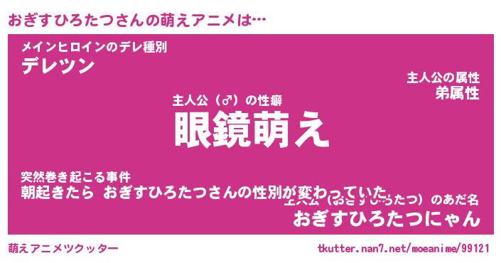 | 男性向けラノベタイトル風あだ名 | 『おぎすひろたつの憂鬱』 |