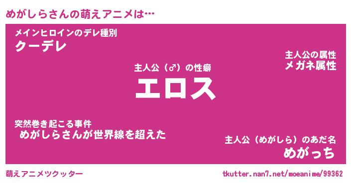 | 男性向けラノベタイトル風あだ名 | 『メガシラアートオンライン』 |