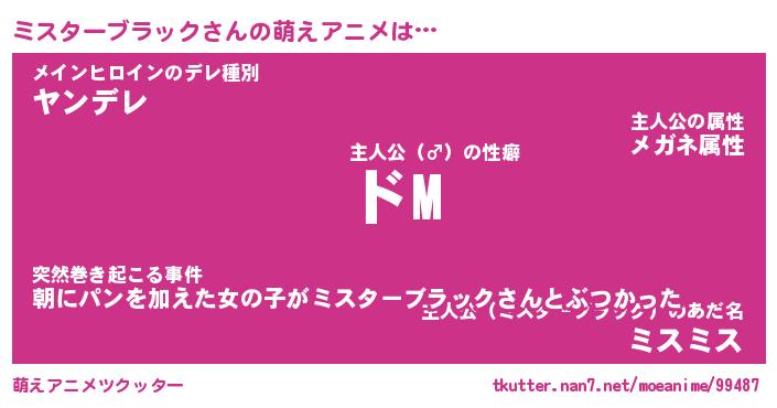 | 男性向けラノベタイトル風あだ名 | 『ミスターブラックの憂鬱』 |