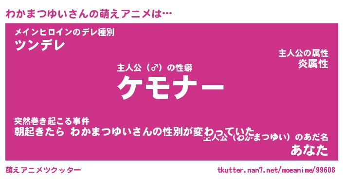 | 男性向けラノベタイトル風あだ名 | 『ワカマツユイアートオンライン』 |