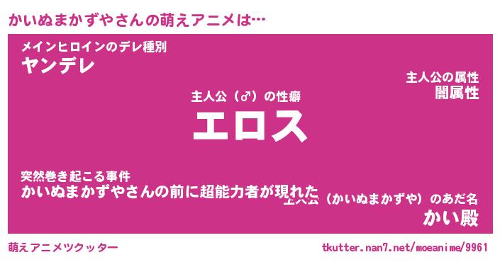 | 女子向けラノベタイトル風あだ名 | 『誰かこのかいぬまかずやを説明してください! ~契約から始まるウェディング~』 |