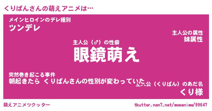 | 男性向けラノベタイトル風あだ名 | 『くりぱんの憂鬱』 |