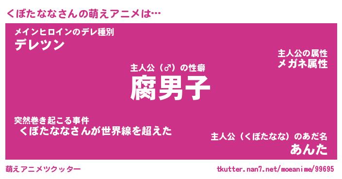 | 男性向けラノベタイトル風あだ名 | 『クボタナナアートオンライン』 |