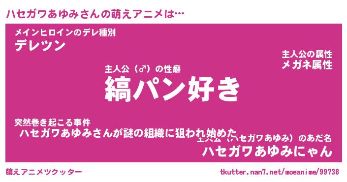 | 女子向けラノベタイトル風あだ名 | 『(仮)ハセガワあゆみのやんごとなき事情』 |