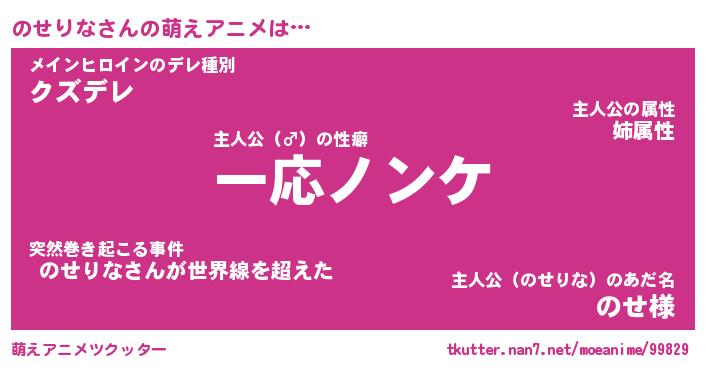 | 男性向けラノベタイトル風あだ名 | 『ノセリナアートオンライン』 |