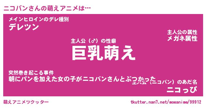 | 男性向けラノベタイトル風あだ名 | 『ニコバンの憂鬱』 |