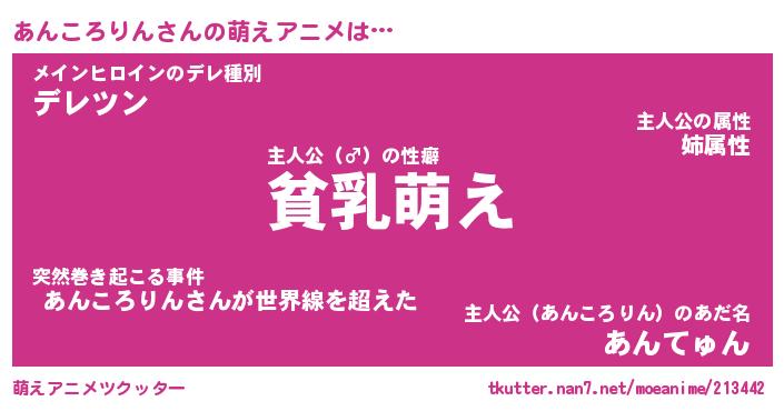 | 男性向けラノベタイトル風あだ名 | 『あんころりんの憂鬱』 |